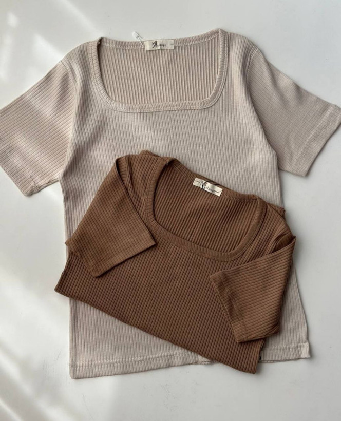 بلوز زنانه آستین کوتاه یقه خشتی پنبهای فری سایز