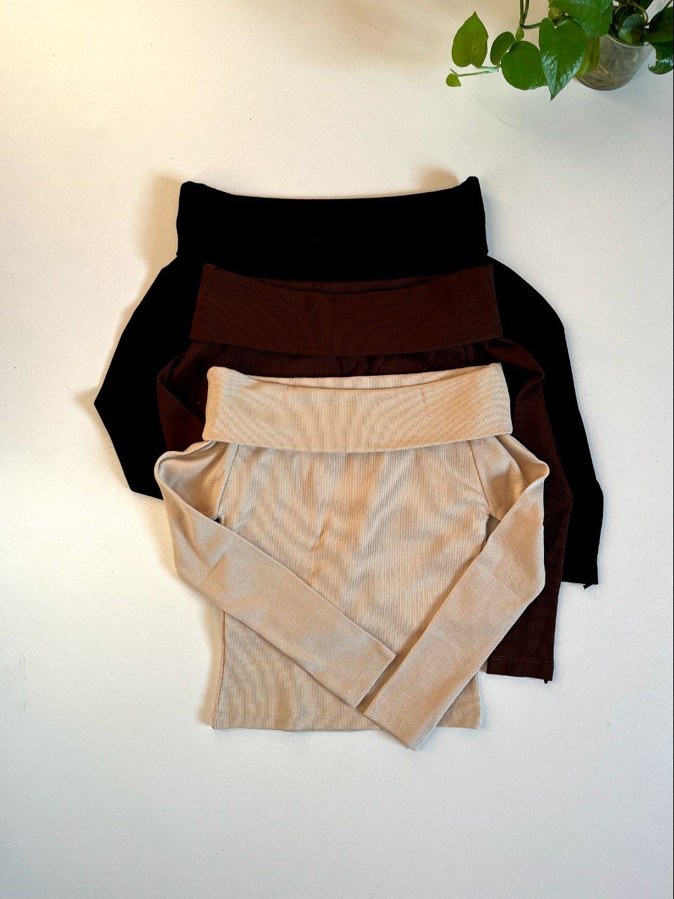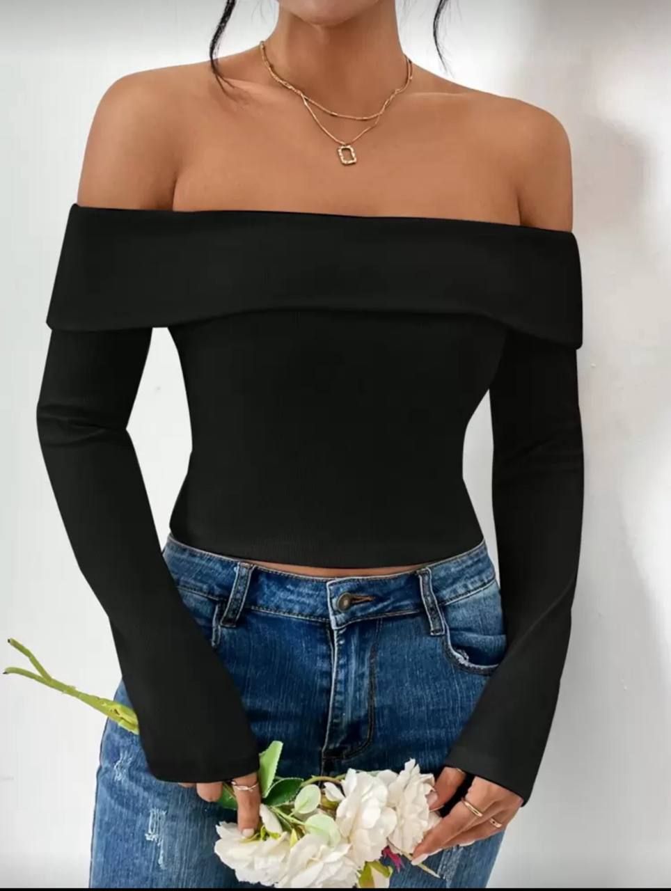 بلوز یقه قایقی✨🥨 قد 45 سانتیمتر 📏 دور سینه حالت عادی 72سانتیمتر حالت کشسانی 120 فری سایز 36تا 42 جنس کشبافت قیمت 488 تومان